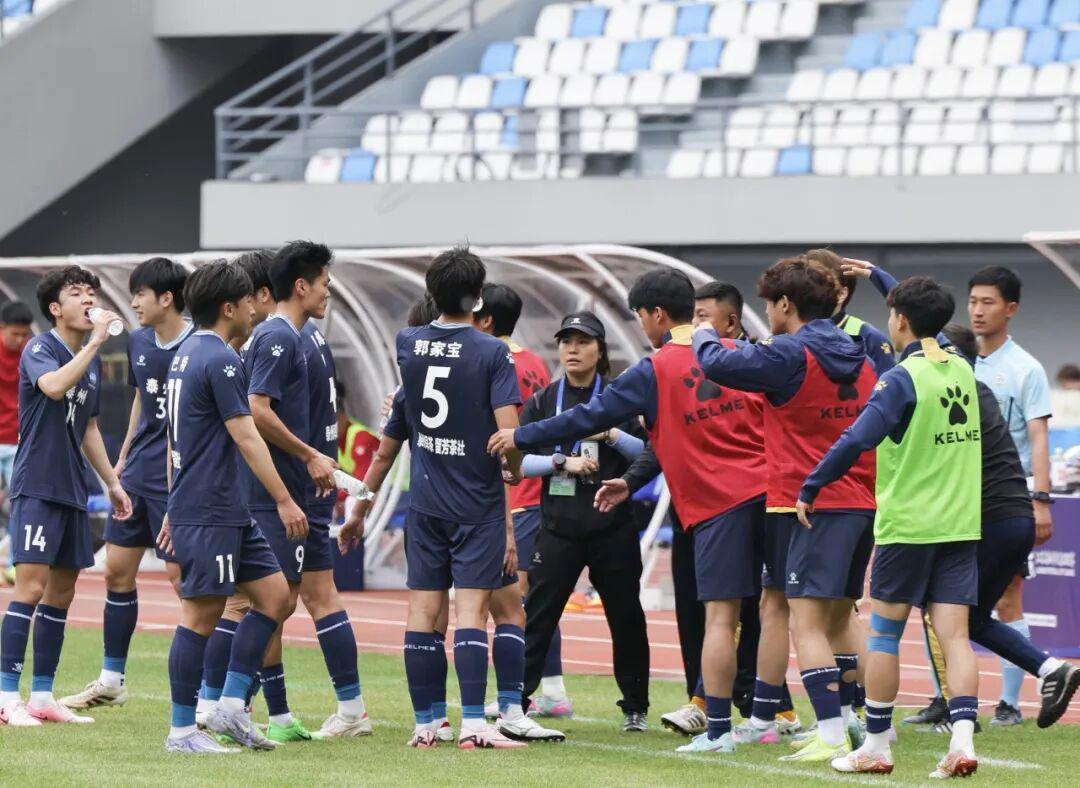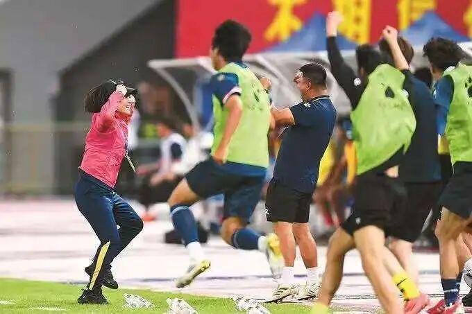 一头简单的过肩长发,一身利落的运动服,看起来英姿飒爽的周高萍是“苏超”唯一的女性主教练
